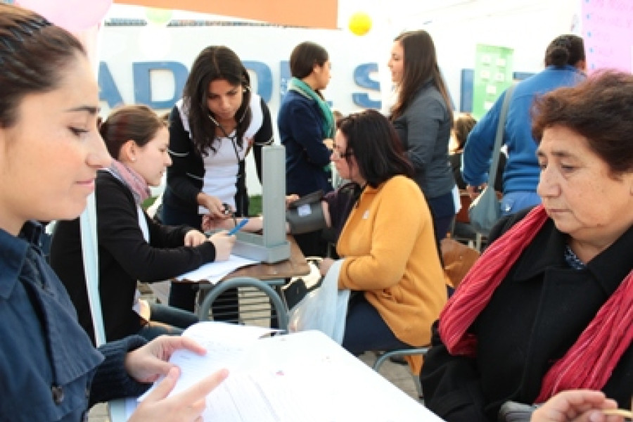 La Feria de la Salud contó con la participación de un centenar de estudiantes de la Carrera, quienes en grupo, se hicieron cargo de los 7 stand dispuestos para el evento, y en donde se entregó a los usuarios información relevante sobre primeros auxilios, anticoncepción, prevención de enfermedades cardiovasculares, sida y enfermedades de transmisión sexual, prevención de accidentes, campaña de invierno y examen médico preventivo adulto.Entre las 9 y las 14 horas, un gran número de personas se acercó a los módulos de información para preguntar y resolver dudas, principalmente sobre el autoexamen de mamas y prevención de enfermedades cardiovasculares, y en donde también tuvieron la oportunidad de realizarse el examen de la glicemia.Paulina Parra, estudiante de 4º año de la Carrera y una de las organizadoras del evento, aseguró que esta iniciativa además de entregar un servicio a la comunidad, “tiene como fin manifestar nuestra molestia como estudiantes ante el proceso de requintilización y que hoy afecta a cientos de estudiantes universitarios a lo largo del país”.En tanto el estudiante del mismo curso, Robinson Saavedra, expresó que “estar movilizados no significa no hacer nada, sino entregar nuestros conocimientos al servicio de la comunidad y demostrar nuestro compromiso con la educación”.Por su parte, Debora Ruiz, señaló que antes del evento, los estudiantes de 1º y 2º año de la Carrera recibieron capacitación para atender adecuadamente las consultas e inquietudes de la comunidad.Una de las vecinas de la comuna de Estación Central que asistió al operativo, Pilar Pérez, agradeció la oportunidad de informarse en una instancia como esta “en que los estudiantes destinan su tiempo para ayudar a la comunidad y además ponen a disposición de los vecinos información relevante y que a veces no está tan al alcance de la mano”.Respecto de la iniciativa, la directora de la Escuela de Enfermería, Marta Maturana, expresó: “Cada día me sorprende gratamente, la iniciativa, entrega y compromiso de los estudiantes con la comunidad, su Escuela y la Universidad. Los felicito por el éxito logrado y gran número de estudiantes que participaron”.Para los organizadores esta Primera Feria de Salud fue un éxito, no sólo por la convocatoria y el interés que mostraron los vecinos, sino también porque fue posible unir y organizar a los estudiantes de 1º a 5º año de la Carrera, en torno a un tema importante para la comunidad.