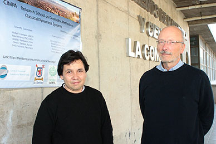 El académico del Departamento de Matemática y Ciencia de la Computación, Andrés Navas, fue el encargado de coordinar en nuestra Universidad, la Escuela de Investigación de Métodos Geométricos en Sistemas Dinámicos Clásicos, que tuvo lugar entre el 25 de septiembre y el 2 de octubre, en el auditorio de esa unidad académica.El encuentro, organizado en conjunto con el Centro Internacional de Matemáticas Puras y Aplicadas, Cimpa, con sede en Francia, tuvo como objetivo profundizar en la relación entre los sistemas dinámicos y la geometría, a través de clases ofrecidas por especialistas internacionales.A la escuela de investigación asistieron estudiantes de diversos puntos de Chile y de otros países de Latinoamérica, como México, Venezuela, Perú y Brasil, favoreciendo la creación de redes internacionales de colaboración.“Se ofrecieron clases especificas sobre temas que, en general, no están en los programas de estudio. Por lo tanto, muchas personas vienen interesadasaunque en sus instituciones no haya mucho desarrollo de los temas”, explicó el académico Andrés Navas, indicando que en el caso de nuestra Universidad, esta área se estudia en el Centro de Sistemas Dinámicos y Temas Relacionados, financiado gracias a un fondo Anillos de Ciencia y Tecnología (ACT 1103), otorgado por Conicyt.El decano de la Facultad de Ciencia, Dr. Rafael Labarca, explicó que en 2009, nuestra Universidad realizó otro gran encuentro en conjunto con Cimpa, se trató del IV Congreso Latinoamericano de Matemáticas, y la experiencia de entonces, dio buenos frutos.“El contacto de estudiantes con especialistas que están creando nuevas cosas, siempre ha beneficiado al estudiante. Lo ayuda a tener una visión más amplia de la línea de trabajo y sus perspectivas”, señaló el decano Labarca, explicando que el grupo de Sistemas Dinámicos de nuestra Universidad tiene más de 30 años, aunque sólo en los últimos tiempos se ha relacionado con la geometría. “Nos parece muy bien la mezcla de estas áreas y el interés de los jóvenes por ellas, ya que  esperamos que las desarrollen al máximo nivel abriendo nuevas líneas en estos ámbitos”, dijo la autoridad.Otro de los objetivos del encuentro significó motivar a los estudiantes, ya que no sólo incluyó clases, sino también ejercicios e interacción. “La gente decide quedarse y trabajar en el área después de asistir a escuelas de este tipo”, acotó el profesor Andrés Navas, reconociendo que en algunos casos, los contenidos también le resultaron novedosos. “Aprendí mucho, porque la Escuela no sólo estuvo orientada a los jóvenes.Para un investigador, aunque se tenga conocimiento,siempre es bueno volver a escucharla matemática de otra manera, ya que surgen conexiones inesperadas”, añadió el académico.Redes de estudiantesEl director de Cimpa, Claude Cibils, explicó que la experiencia en nuestra Universidad le pareció extraordinaria. “Hacemos 20 escuelas Cimpa por año, en América Latina, África y Asia, y ésta es típicamente una de las más exitosas”, indicó.El profesor Claude Cibils explicó que el encuentro sirvió para que los estudiantes menos avanzados se motivaran a investigar más y establecer lazos y redes de trabajo. Lo mismo opinaron los expositores que cerraron la jornada, FelixSchlenky Sheila Sandon.“El ambiente fue bueno, la gente se quedó hasta el final de las exposiciones y trabajó. Se ve que son personas que de verdad quieren aprender y eso es importante”, indicó el profesor de la Universidad de Neuchâtel (Suiza), Félix Schlenk, agregando que “es bueno para todos ver cómo otros grupos funcionan, trabajan y se comunican de manera diferente”.En esta misma línea, la profesora de la Universidad de Strasbourg (Francia), Sheila Sandon, indicó que pese a que las Conferencias fueron en inglés, y en muchos casos, sobre temas bastante abstractos, “tuve la sensación de que la gente pudo seguir el hilo y quizá tengan bastante trabajo para continuar después”.¿Qué son los sistemas dinámicos?El doctor Andrés Navas explicó que la importancia de los sistemas dinámicos radica en que “estudian la teoría del caos” tratando de encontrar las reglas que puedan ser modeladas matemáticamente para dar respuesta a sistemas complejos, como fenómenos físicos, biológicos o sociales.“Cuando uno empieza a entender cómo funcionan o se comportan algunas cosas, se da cuenta de que lo que parecía caótico y luego parece sencillo”, añadió el académico acotando que la relación con la geometría se da en el sentido que “muchos sistemas dinámicos tienen interpretación geométrica o vienen de esa disciplina” y, luego de ser modelados, pueden aplicarse en el mundo real.El director de Cimpa, Claude Cibils agregó que los sistemas dinámicos “están dentro de la matemática fundamental, pero muy cerca, en la frontera, de las aplicaciones”.