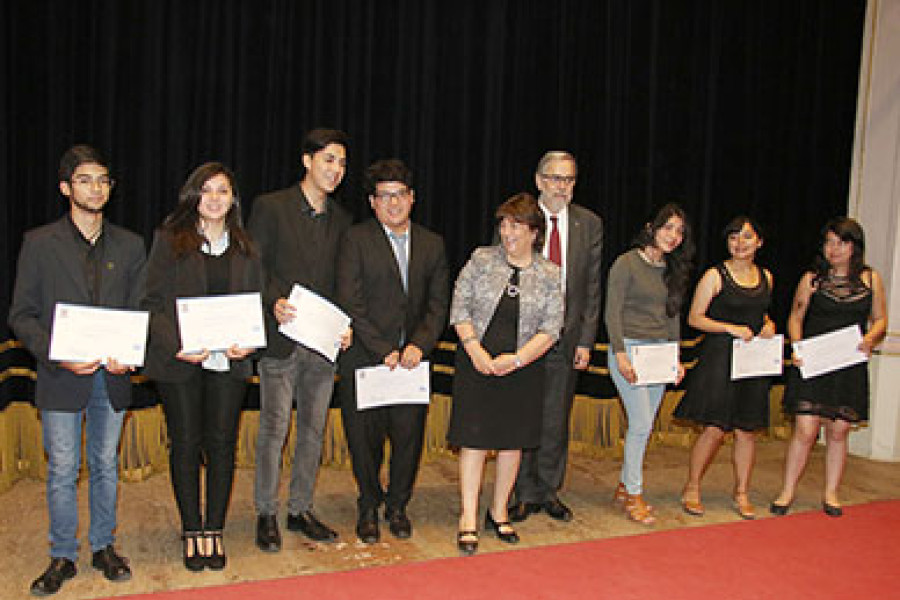 Jamás imaginaron los estudiantes de la décimo primera versión del Programa Propedéutico que recibirían sus certificados de mano de la Ministra de Educación, Adriana Delpiano, y del Rector de la Universidad, Dr. Juan Manuel Zolezzi Cid, este sábado (23) en el marco de la ceremonia realizada en el Aula Magna. Fue una instancia inolvidable para los 41 participantes provenientes de seis establecimientos fiscales, como también para sus familiares. Culminaba así un semestre intenso de estudios, de este programa impulsado en 2007 por nuestra Universidad en conjunto con la Unesco y cuyo fin es dar acceso a la educación superior a estudiantes de sectores vulnerables.