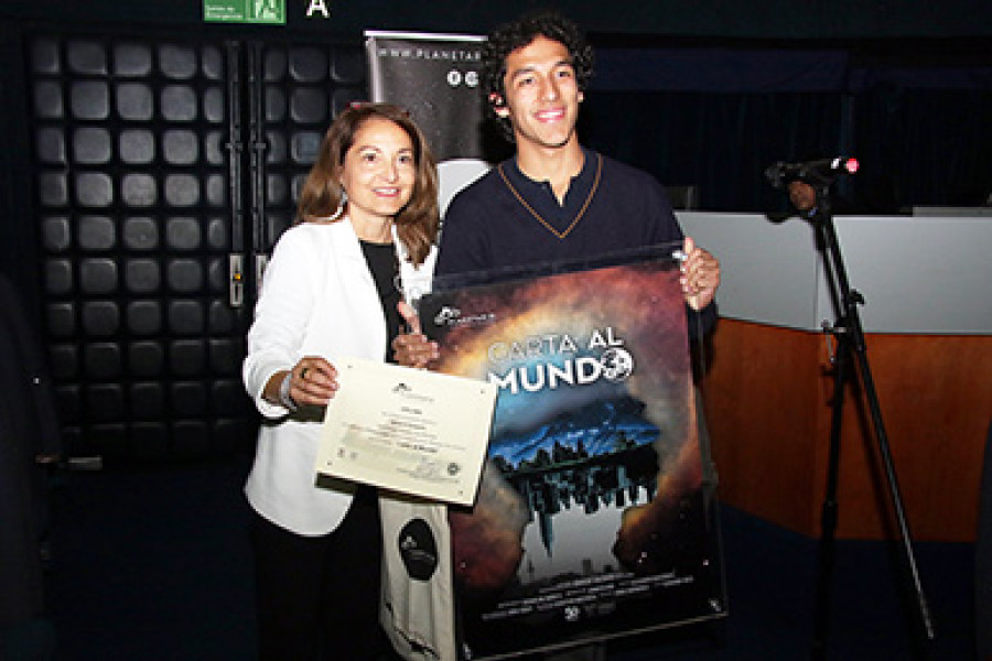 “Carta al mundo” se titula la historia que obtuvo el primer lugar en el concurso de guión “Misterios del Universo”, organizado por el Planetario de la U. de Santiago y el programa Explora-Conicyt. El ganador es Ignacio Salgado (en la fotografía), estudiante del Colegio María Luisa Bombal, cuya obra se convirtió en un cortometraje que será exhibido en formato full dome, antes de cada función de la cartelera habitual que ofrece este centro de divulgación astronómica. Según la directora ejecutiva de Planetario, Jacqueline Morey, con esto el Plantel está “incentivando vocaciones científicas, tecnológicas y creativas”.